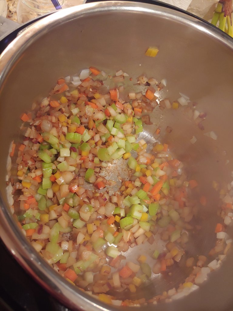 - Cook until onions become translucent then add in celery and carrots and Sautee for 2 more minutes