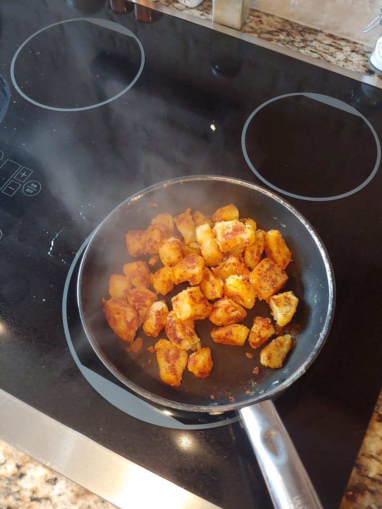 Ok, ok! I know these aren’t the ~healthiest~ but I love a good fried potato and they are good for your souls health! I really like these for breakfast or in tacos but they could really be dressed up anyway. They are so simple and WAY quicker then frying them directly in the pan.