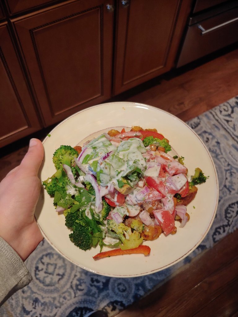 In the picture below I topped the potatoes with grilled veggies, guacamole, and a herb cream I made from some homemade yogurt. But really they don’t need any toppings to be delicious, so do as you please!