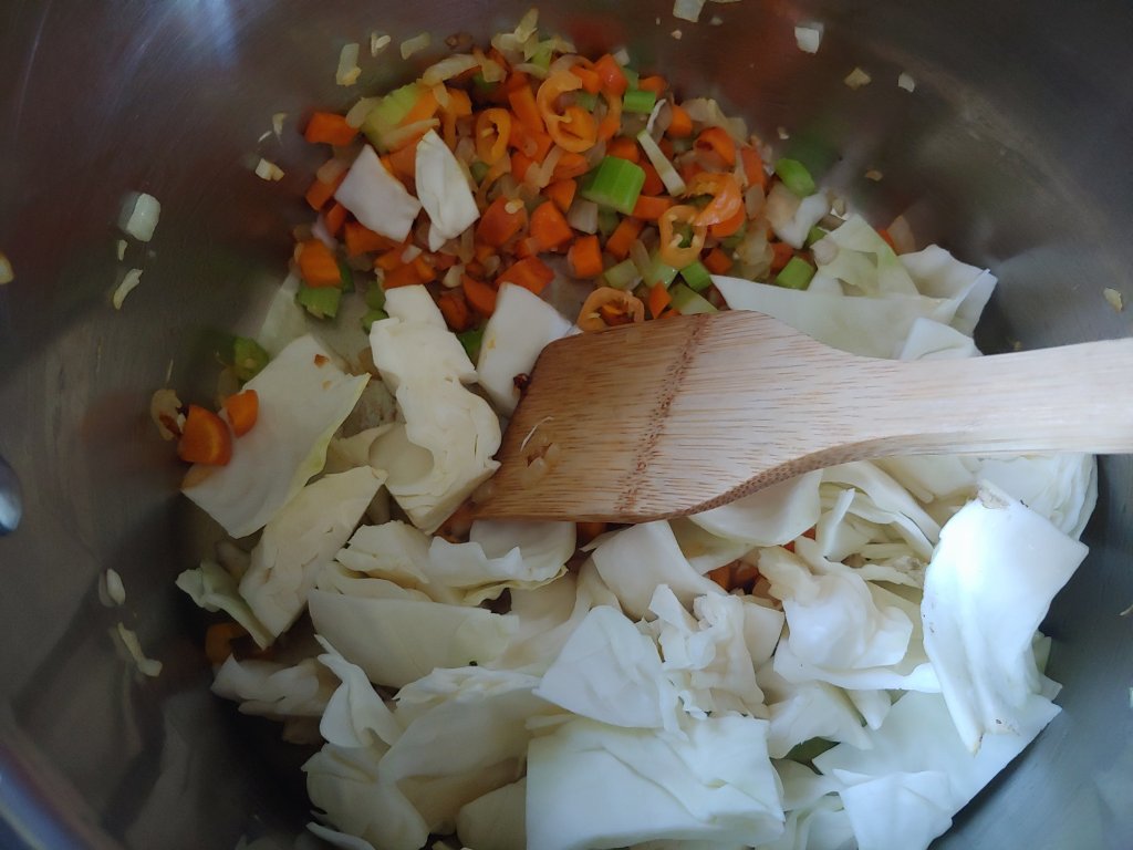 - 2 heads of cabbage – cut into medium size chunks