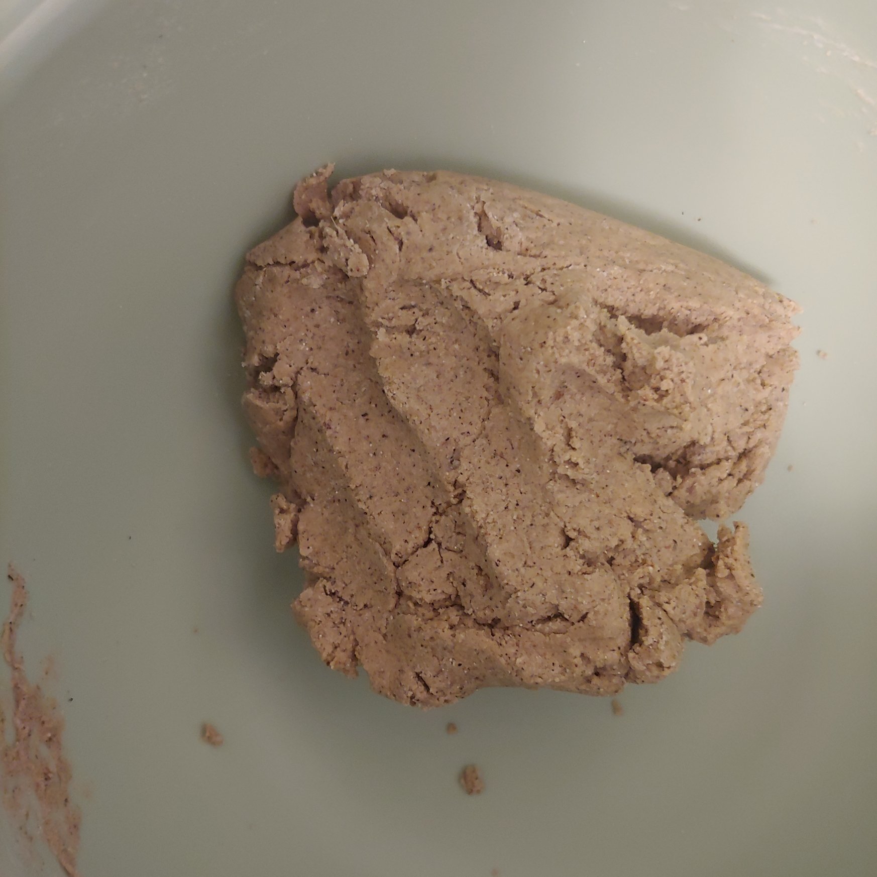 - Combine buckwheat flour, corn starch, and baking powder and fold in to the wet ingredients – the dough should be very thick and almost crumbly